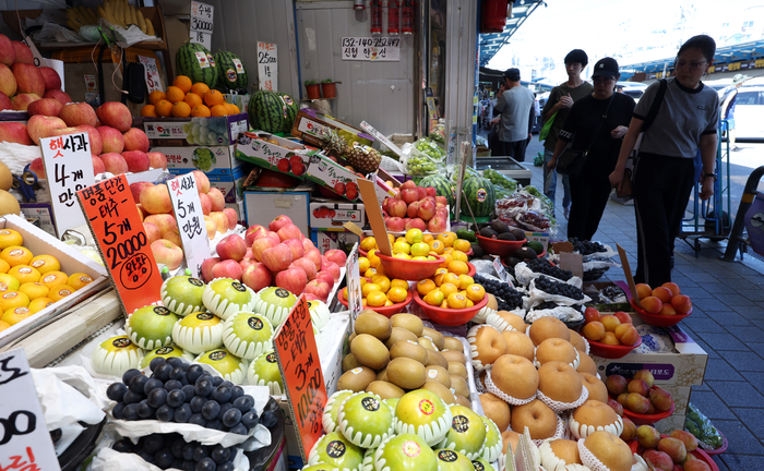 사진은 10일 서울 청량리 청과물 시장 모습. [사진 = 뉴스1] 추석 명절을 맞아 정부가 소비쿠폰을 발급하고 유통업계에서는 대규모 할인전에 나서며 민생 물가 부담 완화에 힘을 보태고 있다. 소비자들의 지갑을 열게 할 ‘겹호재’가 실질적인 체감 효과로 이어질 수 있을지 주목된다.
