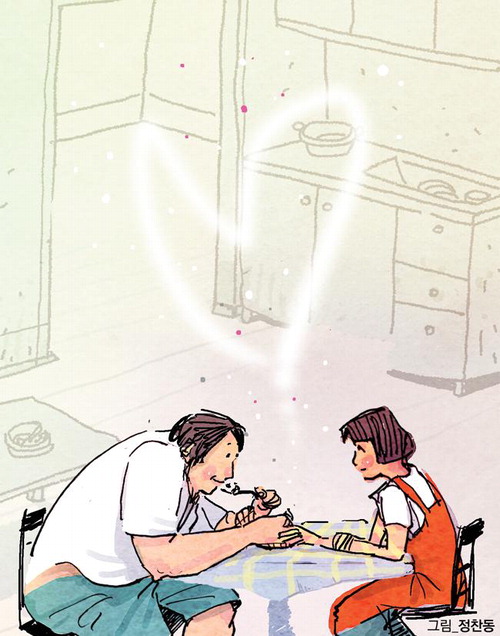 숟가락 든 손등에 옹이가 깊어져 있었다