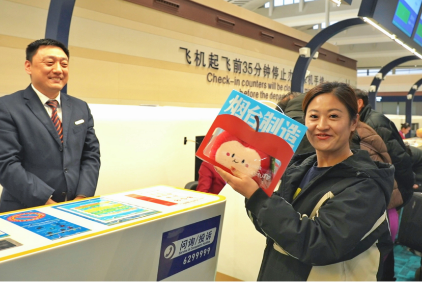 ‘옌타이 제조’ 문화창의 기념품을 받는 체크인 승객