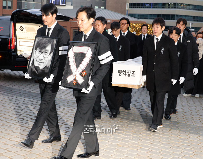 #정우성-이정재,안성기 영정과 훈장 들고