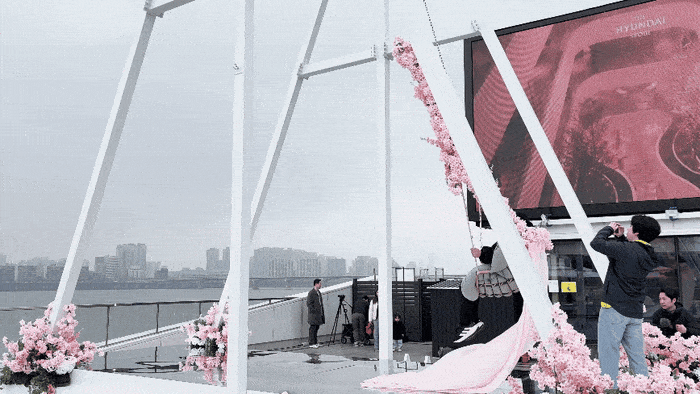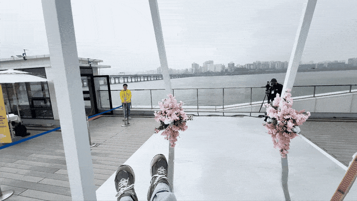 조이스윙 체험 중인 시민/사진=김지은 여행+ 기자 회전목마 인근 여의도 한강버스 선착장 옥상에는 또 다른 한강 체험 프로그램이 들어섰다. 거대 그네를 타고 한강을 발 아래 두는 ‘조이 스윙(공중 그네)’이 그 주인공. 안전장치를 착용한 뒤 의자에 앉으면 직원이 한강을 향해 밀어준다.