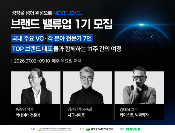‘브랜드 밸류업 1기’는 국민대학교 글로벌창업벤처대학원이 주최하고 연구센터가 주관,네이버가 후원한다. 연구센터는 이번 ‘브랜드 밸류업’ 과정을 통해 사업 고도화 단계에 진입한 브랜드의 다음 도약을 집중 지원할 계획이다.